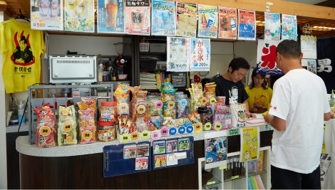 フロントには、70種類以上のドリンク&たくさんの駄菓子をご用意。お風呂あがりのひと息にどうぞ。毎週水曜は「キッズデー」を開催! 中学生以下のお子さまに、駄菓子詰め合わせをプレゼントしています。