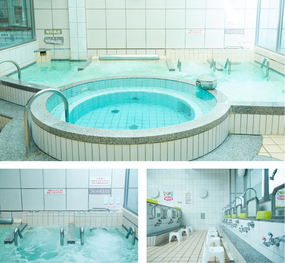 内風呂には珍しい丸いの湯船や電気風呂、ジェットバスなど多彩なお風呂があります。