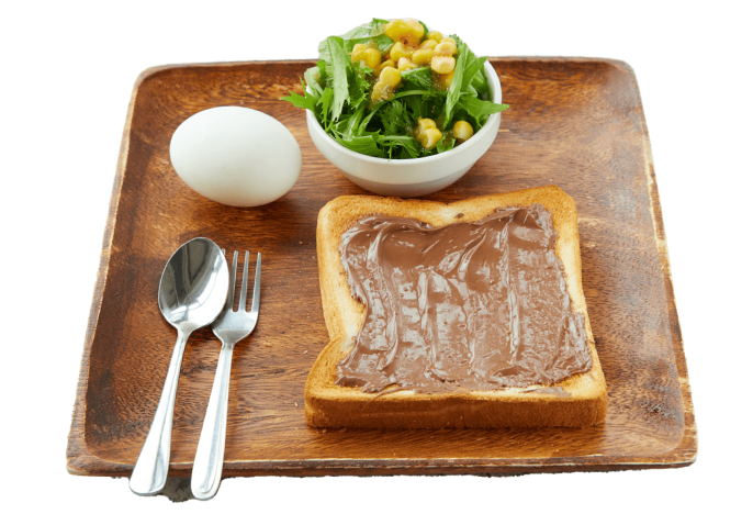 ほどよい甘さのチョコに香ばしいナッツがアクセント。朝の贅沢なひとときを彩る。
