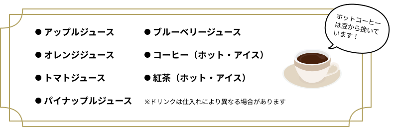 次の6種類からお選びいただけます。(L.O 10時30分)