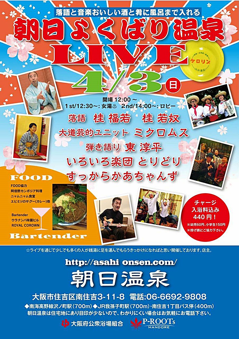 ■2016年4月3日(日) 落語と音楽おいしい酒と肴に風呂まで入れる 朝日よくばり温泉 LIVE